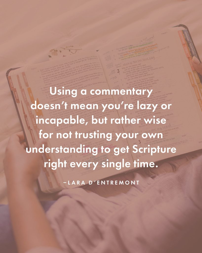 Reason 3: I don’t want to have to have anything but my Bible, a highlighter, a pen, and the Holy Spirit guiding me. This is a stupid thought! Now, I understand that there will be times when I don’t do any extra research or use any other commentaries, but how thorough will my studying be if I don’t use study tools more often than not?!? I found this quote about using a commentary when studying Scripture. I thought it was great! It says, “Using a commentary doesn’t mean you’re lazy or incapable, but rather wise for not trusting your own understanding to get Scripture right every time.” Just because I Google something, or use a commentary doesn’t mean I’m incapable. This just helps me gain more understanding!
